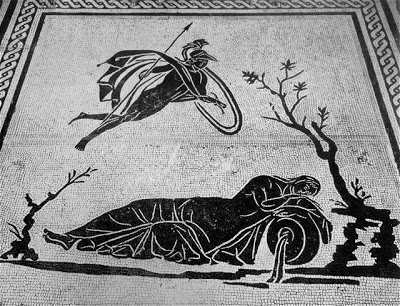Mosaico romano com Marte a descer sobre a vestal Reia Sílvia. Imagem: web
