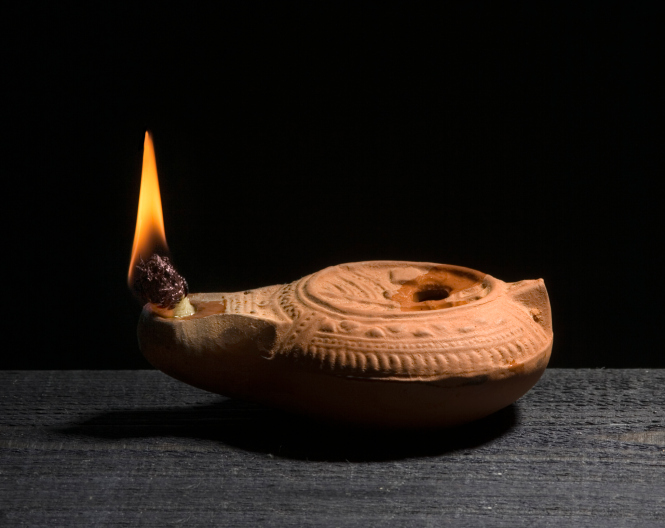 Lamparina de azeite feita em barro. Nota: Imagem da net