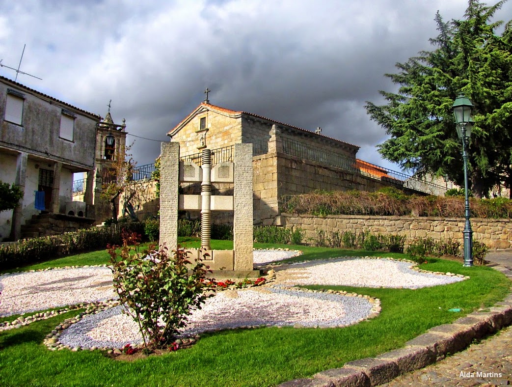 defronte da porta principal da Igreja de Santa Maria de Guimarães, hoje Nossa Senhora da Oliveira, e no meio deste Padrão foi erecta uma